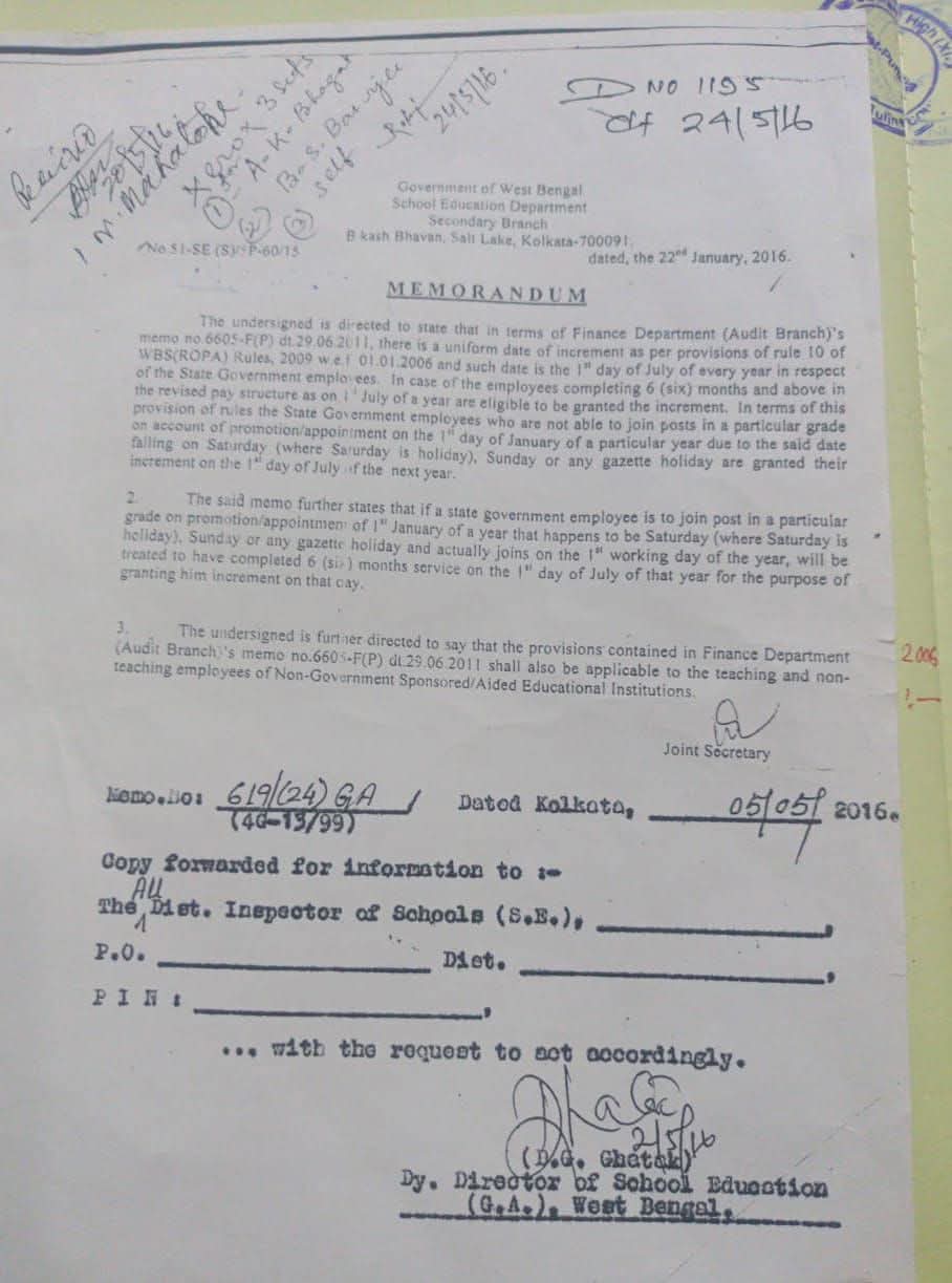 | Annual Increment | 51-se(s)/p-60/15 | 22/01/2016 | WBBSE (Annual increment for 2nd jan joining in the post) | Rules | View and Download |