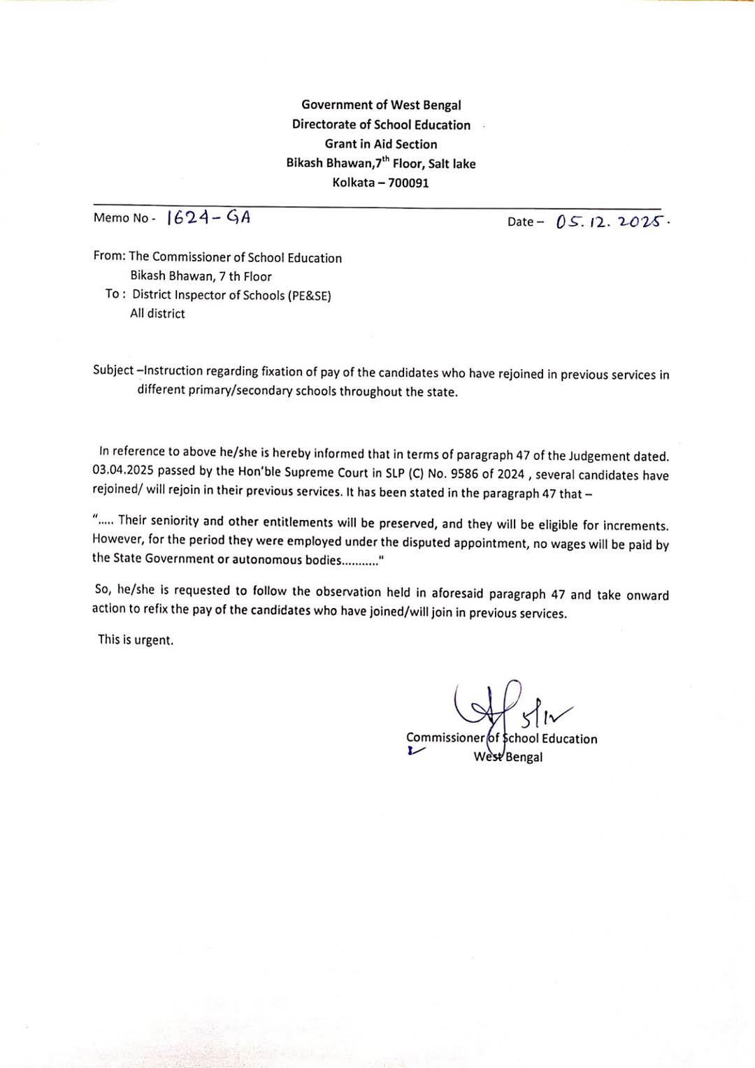 | Appointment/Fixation | 1624-GA | 05/12/2025 | FIXATION OF PAY REJOINED PREVIOUS SERVICE 2016 SSC | Rules | View and Download |